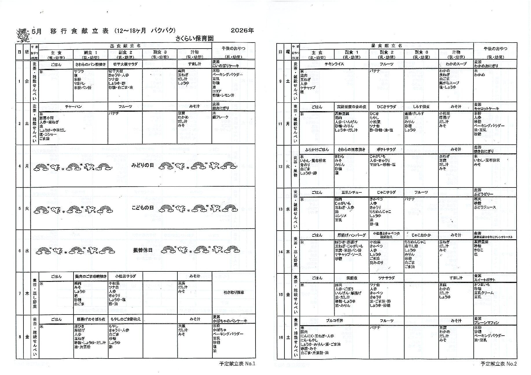 • 5月の移行食献立表